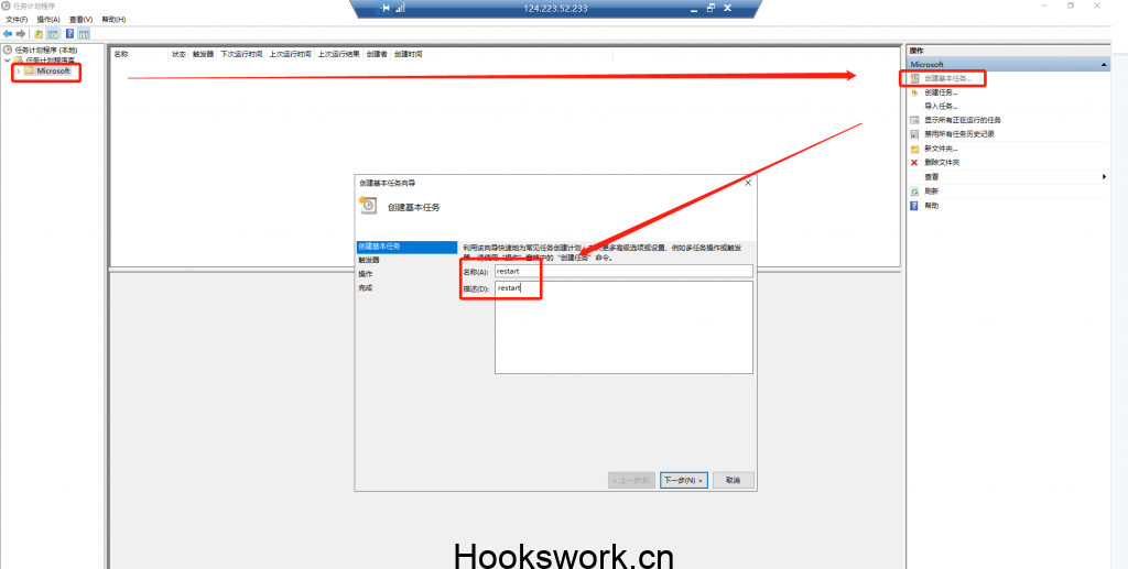 2)展开 任务计划程序 选择 Microsoft,单击 创建基本任务。